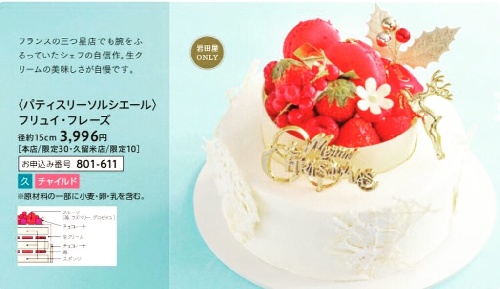 2017年岩田屋天神店・岩田屋久留米店限定クリスマスケーキ