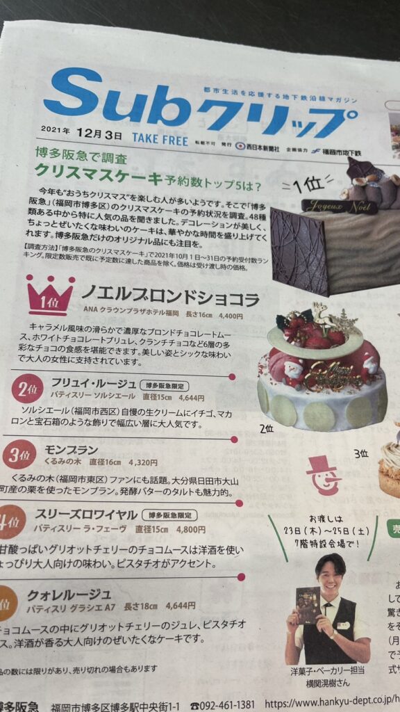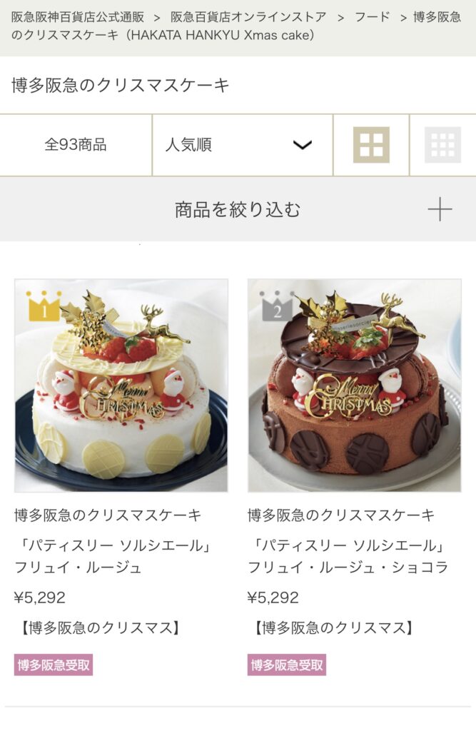2022年博多阪急クリスマスケーキ 人気1.2位獲得