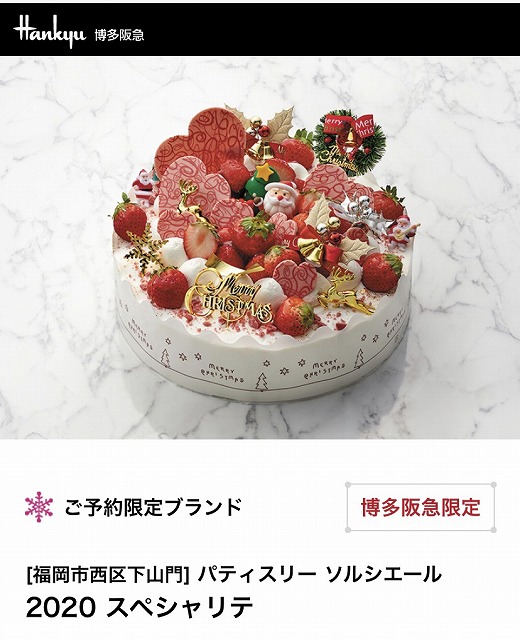 2020年博多阪急クリスマスケーキ