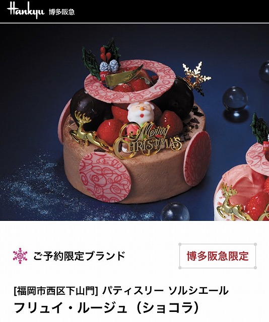 2017.10/1  博多阪急にて限定クリスマスケーキ予約販売開始。