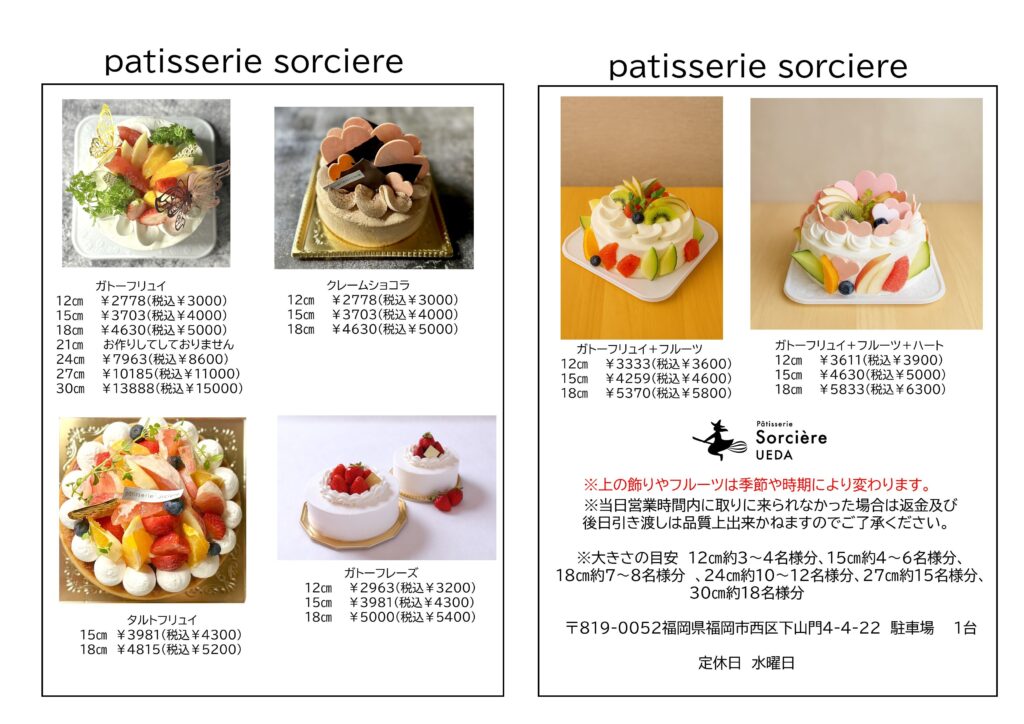 小さいケーキ(ショートケーキ)のご予約はお受け致しかねますのでご了承くださいませ。